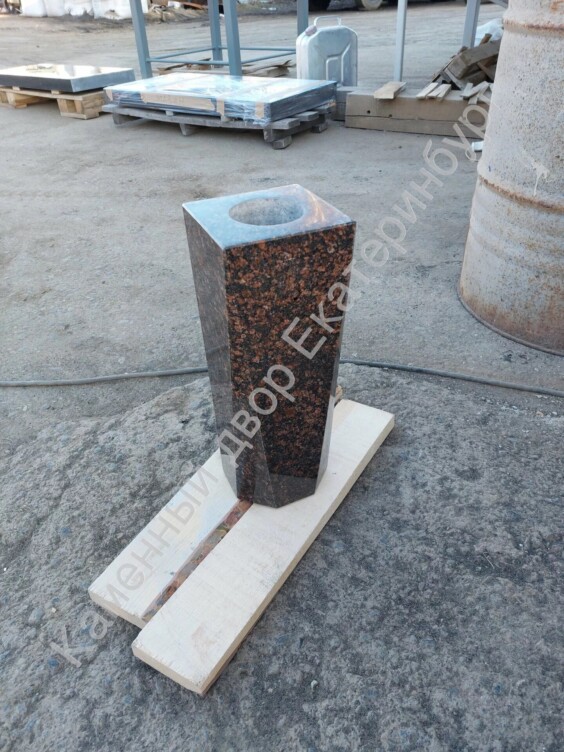Квадратная ваза из дымовского гранита с гранями 400 мм