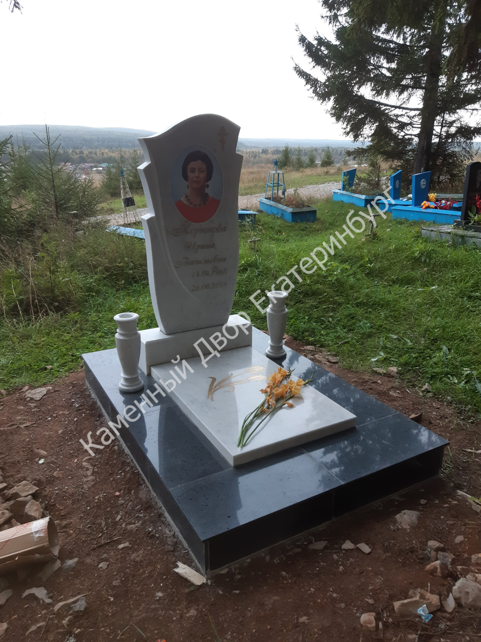 Памятник из белого мрамора с двумя вазами
