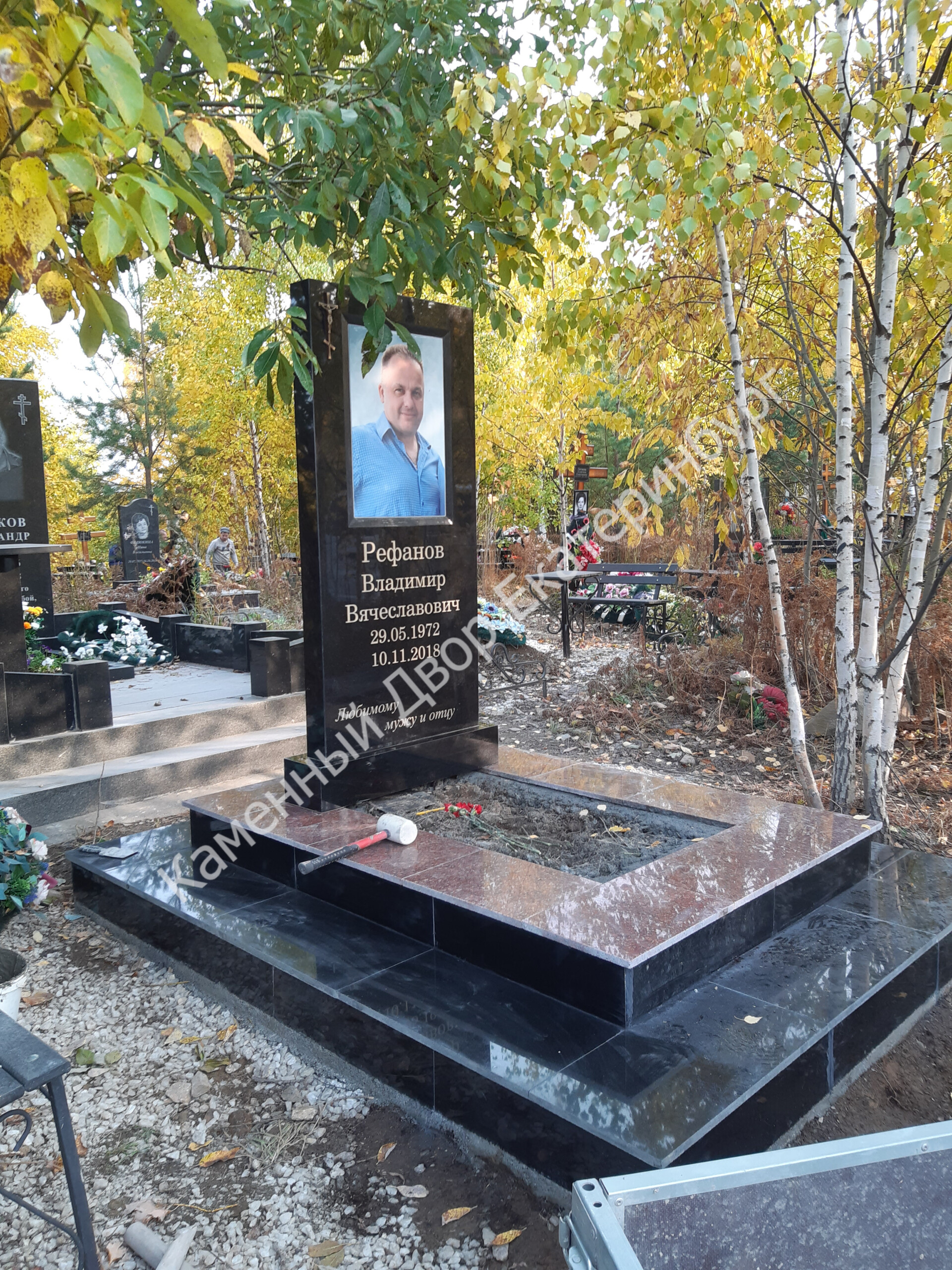 Памятник габбро с резьбой березка
