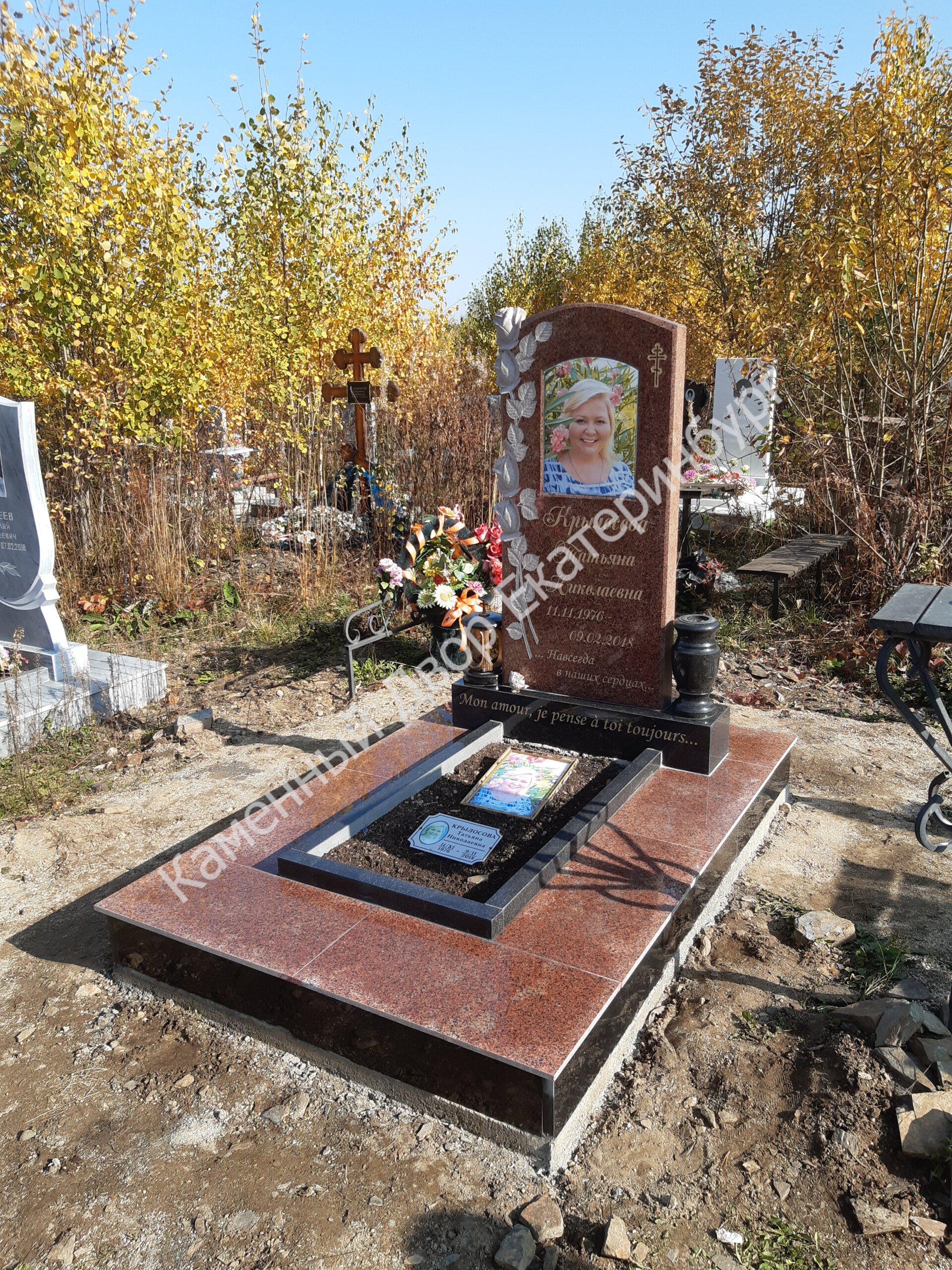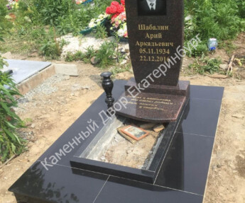 Памятник из Дымовского гранита с надгробной плитой на цветнике