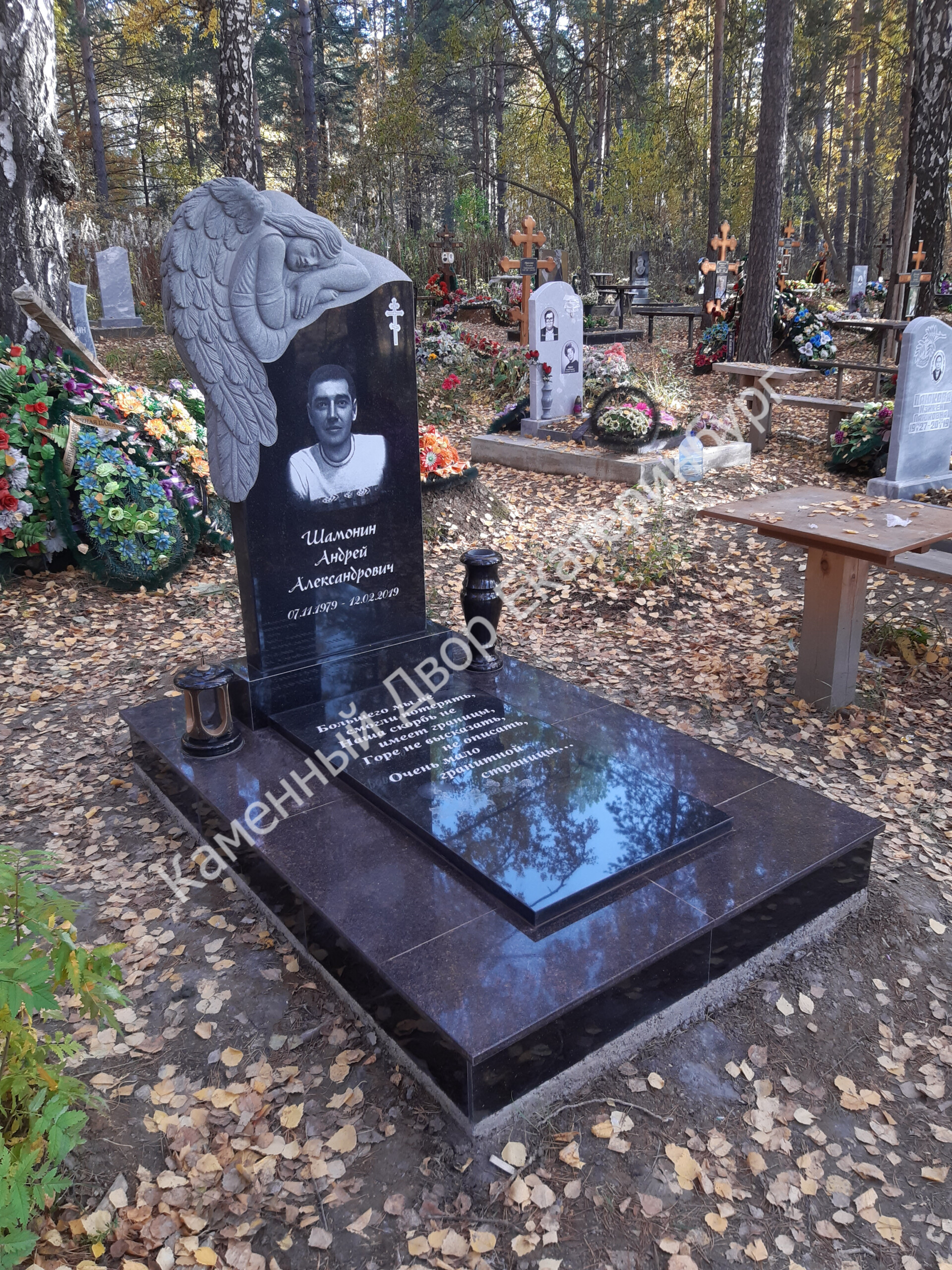 Памятник с резьбой ангела габбро