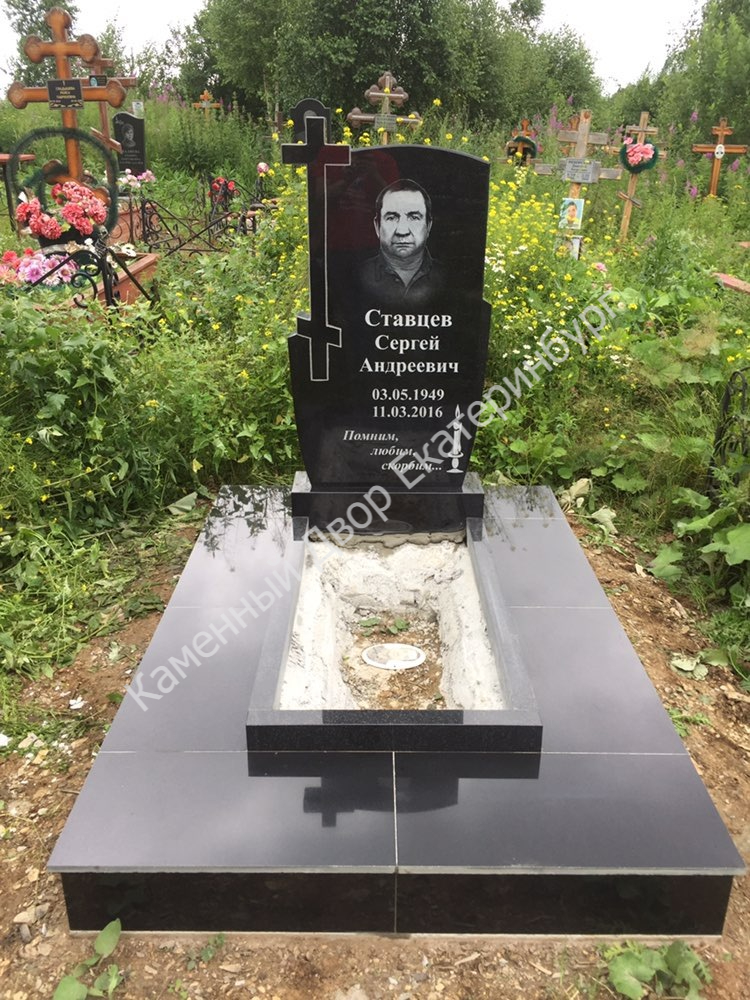 Памятник резной с крестом из габбро